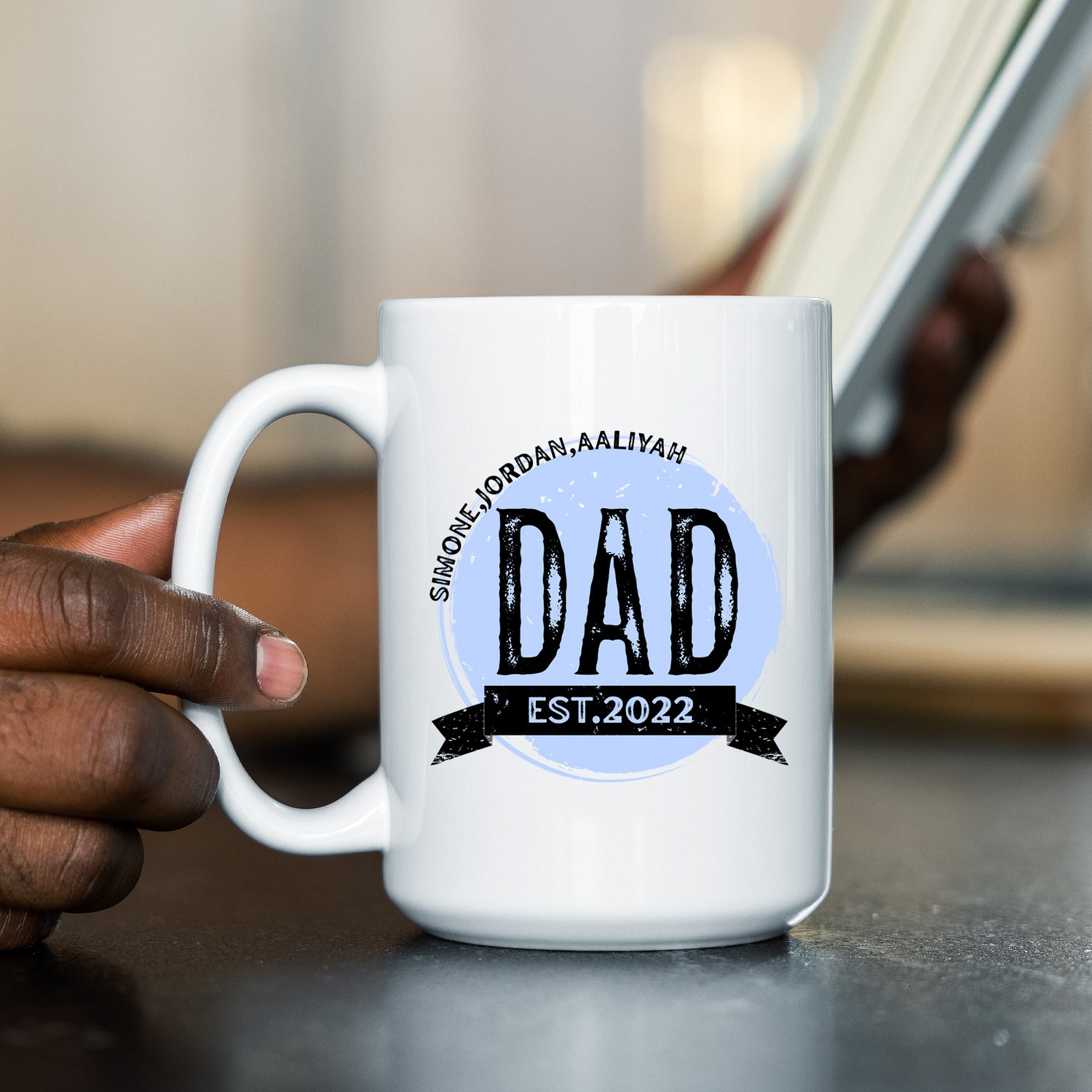 Personalized Dad Mug with Kids Names, Custom Coffee Cup for Fathers Day, Gifts for Him - White / 11oz is backordered and will ship as soon as it is back in stock.