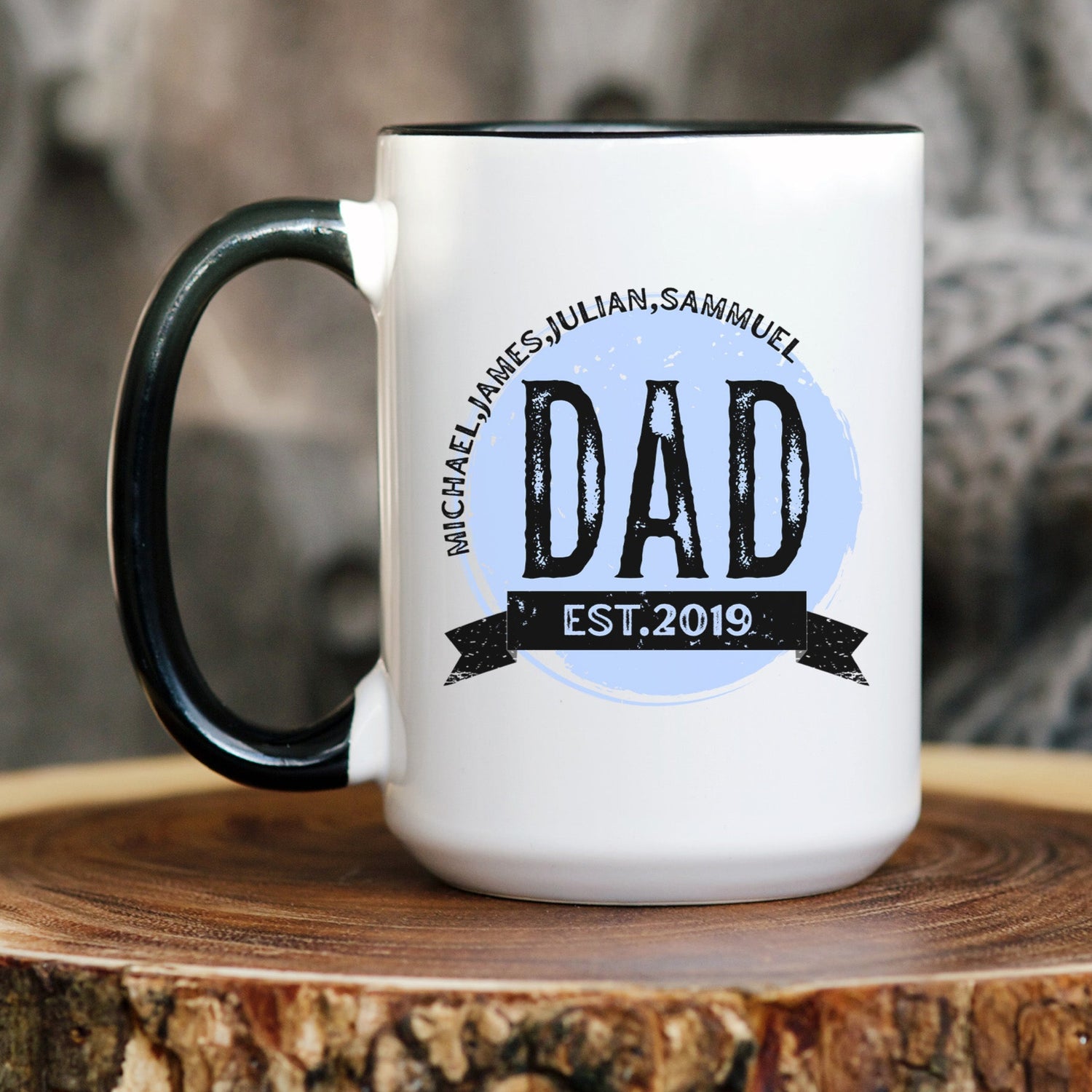 Personalized Dad Mug with Kids Names, Custom Coffee Cup for Fathers Day, Gifts for Him