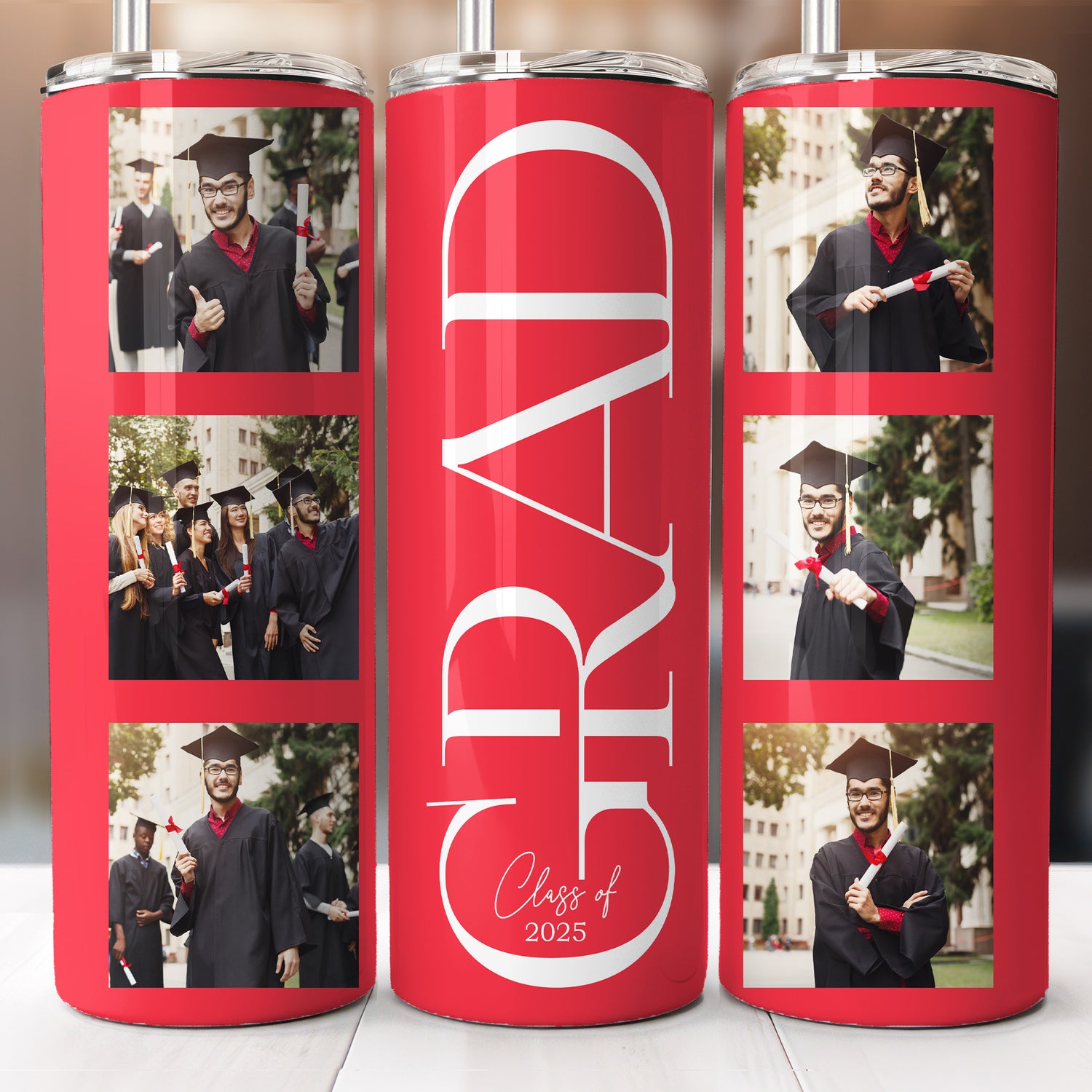 The Personalized Graduation Photo Tumbler is the perfect way to celebrate the Class of 2025 with a unique, custom touch. This elegant graduation gift for her allows you to personalize it with six of your favorite photos of your senior grad, making it an unforgettable keepsake for any graduate. Choose from a wide variety of colors to match the graduate’s style, school colors, or personal preferences.