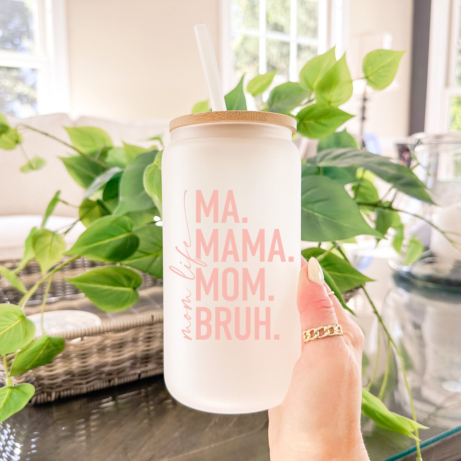 Our Funny Mom Life Coffee Glass Tumbler is the perfect gift for moms who love iced coffee and humor. This 16oz Libbey glass can tumbler features a fun “mom life” design and includes a bamboo lid and reusable plastic straw, great for iced coffee, tea, or smoothies.