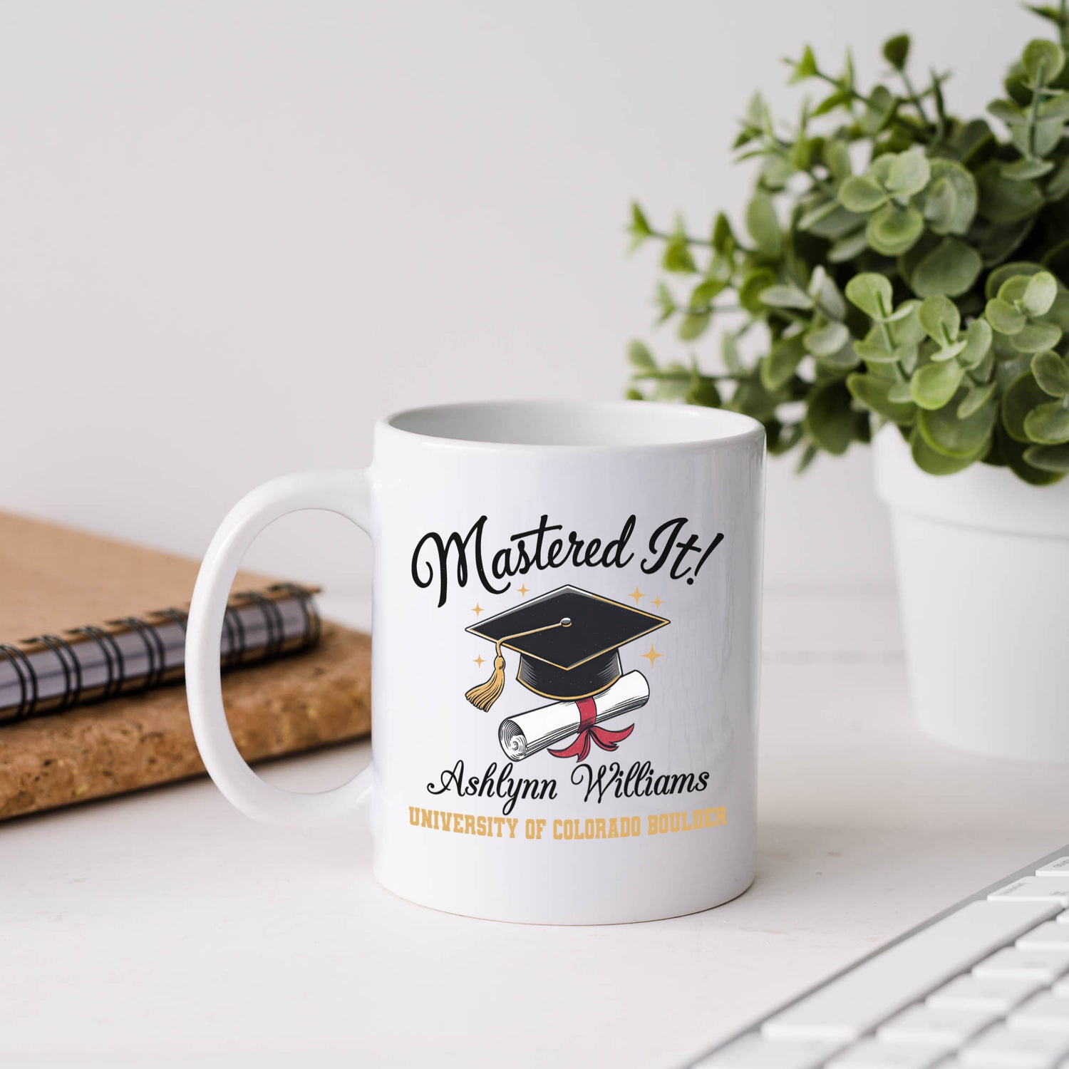 Whether you're shopping for a graduate student or looking for a custom graduation gift, this personalized graduation mug is the ideal choice. The Class of 2025 mug serves as a lasting keepsake gift to celebrate the achievement of earning a master's degree.