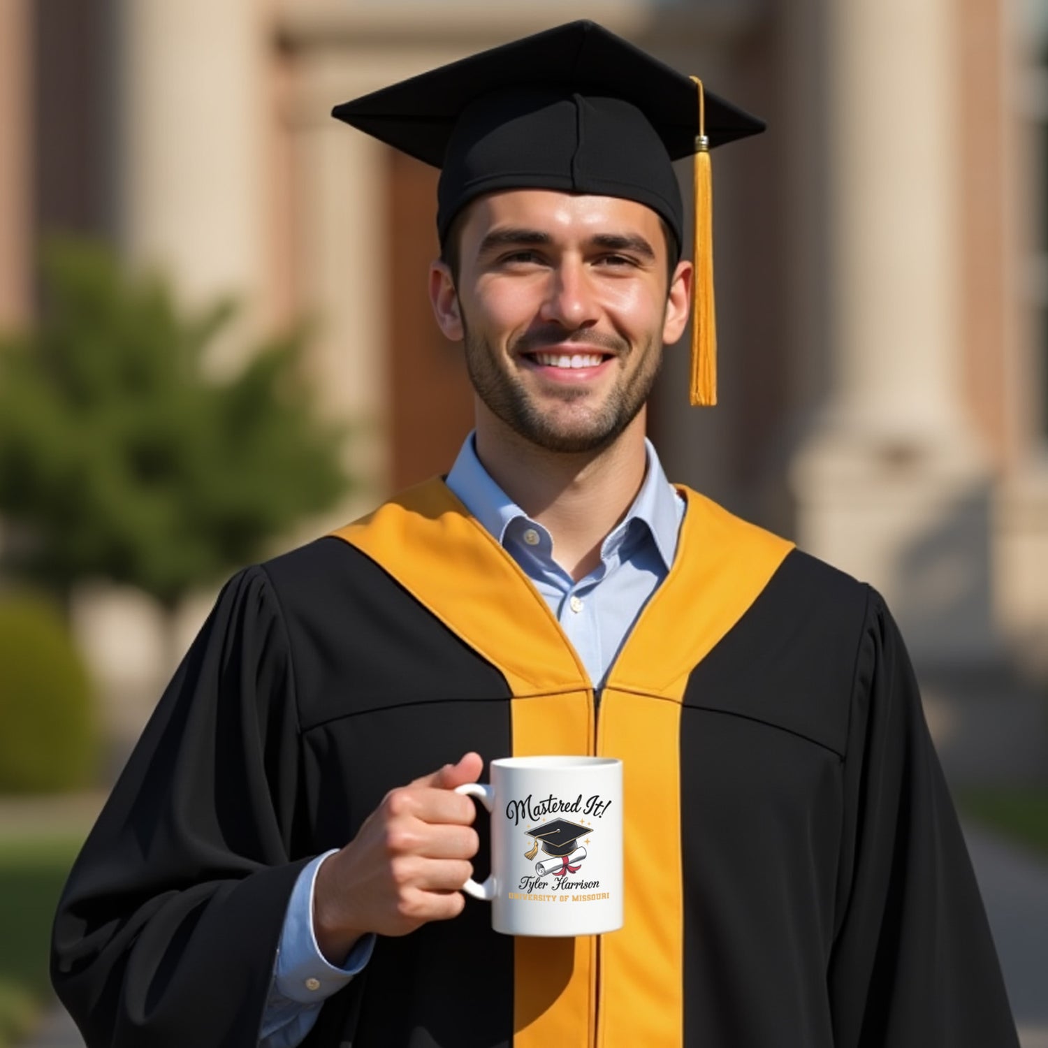 This mug is perfect for graduation gifts for him or her, Master's degree gifts, and customized graduation keepsakes. Celebrate their academic success with a thoughtful, personalized Masters graduation mug—an unforgettable gift for any graduate.