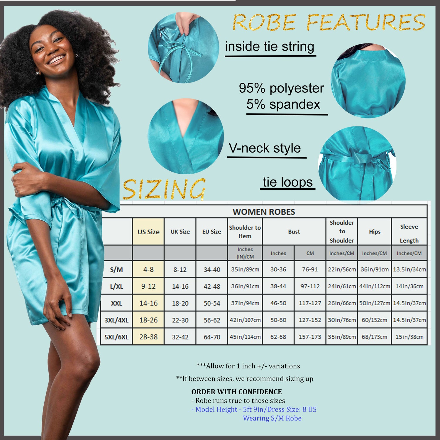 Robe Sizes include S/M (US 4-8), L/XL (US 9-14), XXL (US 15-18), 3XL/4XL (US 20-26) and 5XL/6XL (US 28-38).