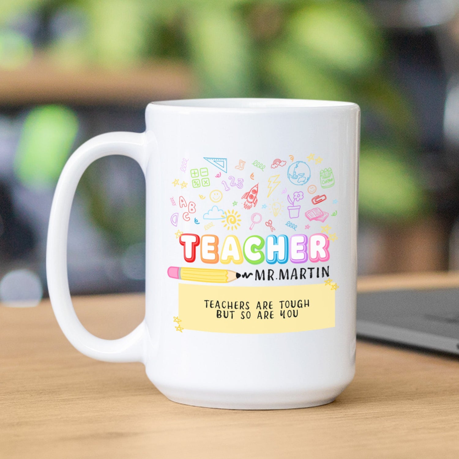 Personalized Teacher Name Mug, Custom Teacher Appreciation Gifts, Cup for Educators - White / 11oz is backordered and will ship as soon as it is back in stock.