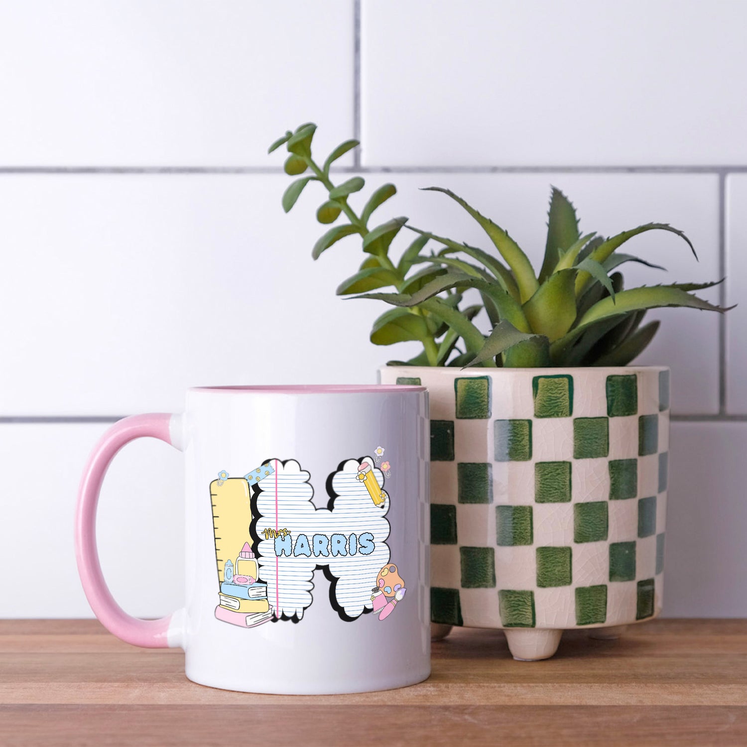 This personalized mug is a standout choice for anyone looking for teacher mugs with names, teacher appreciation gifts for women, custom coffee mugs for educators, or unique personalized teacher gifts.