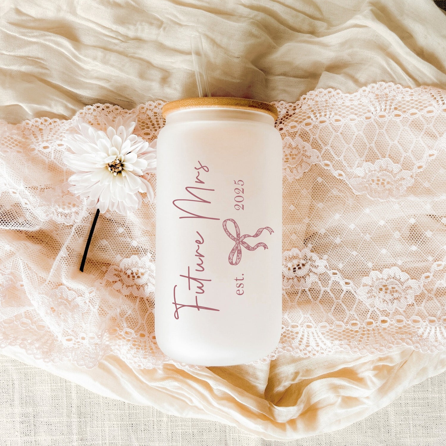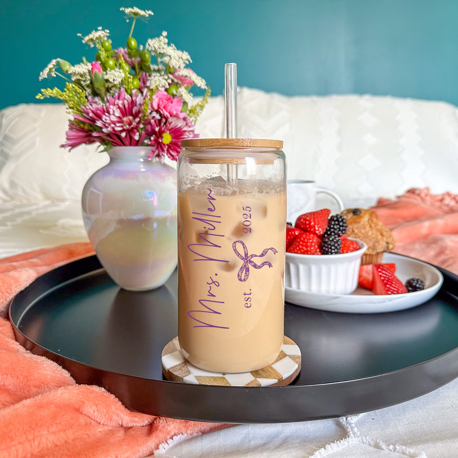 From iced coffee mornings to wedding day prep, this cup makes every sip special. The perfect gift for bride to be, personalized bridal tumbler, wifey glass cup, and custom engagement gift for her!