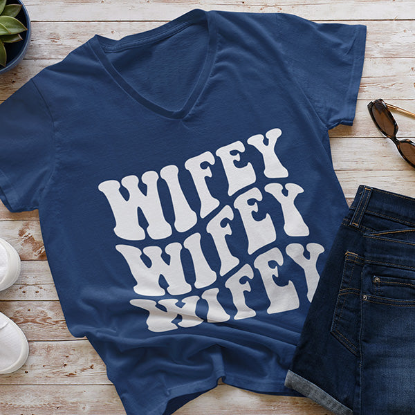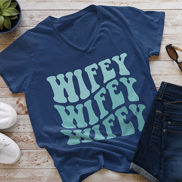 Cute and comfortable Wifey Shirt in a variety of styles and colors featuring a retro design on front. Great as a gift for wife or bride to be. These shirts are made to order so you can truly create a one-of-a-kind style by selecting from different color schemes and style options.
