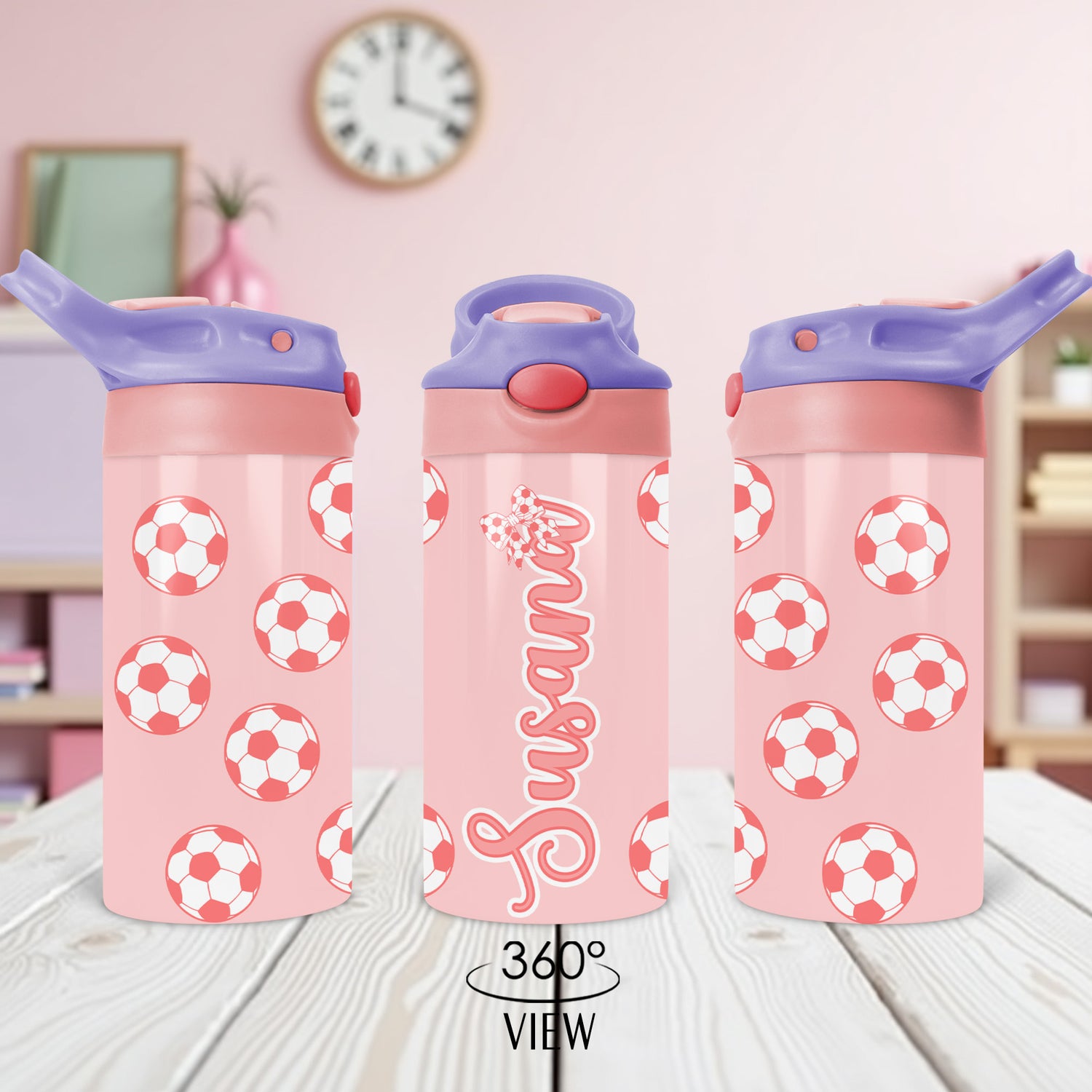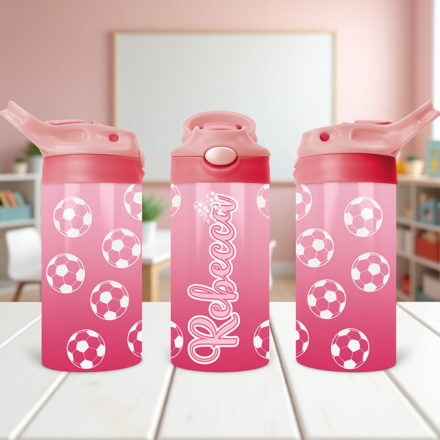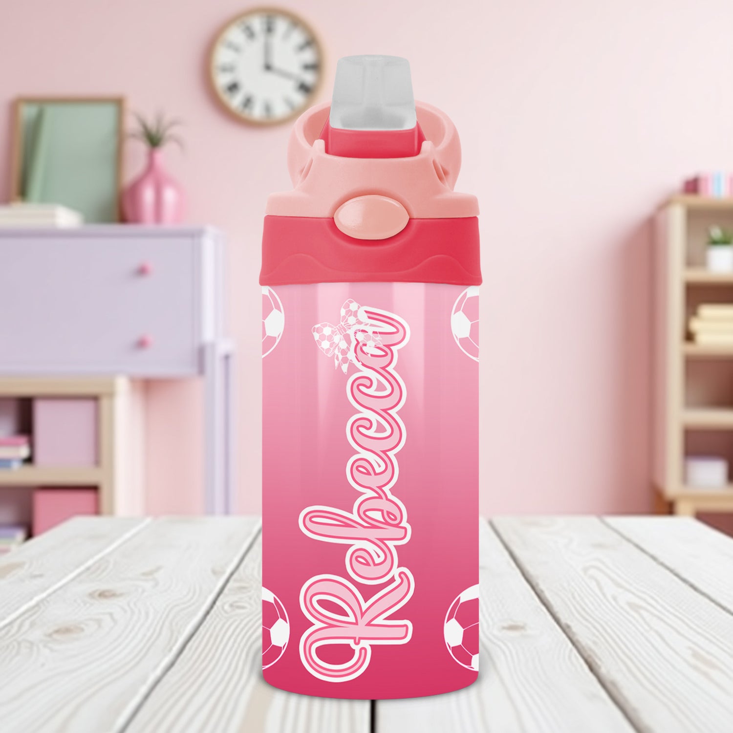 Pink Soccer Water Bottle for Girls with Name, Custom Back to School Gifts