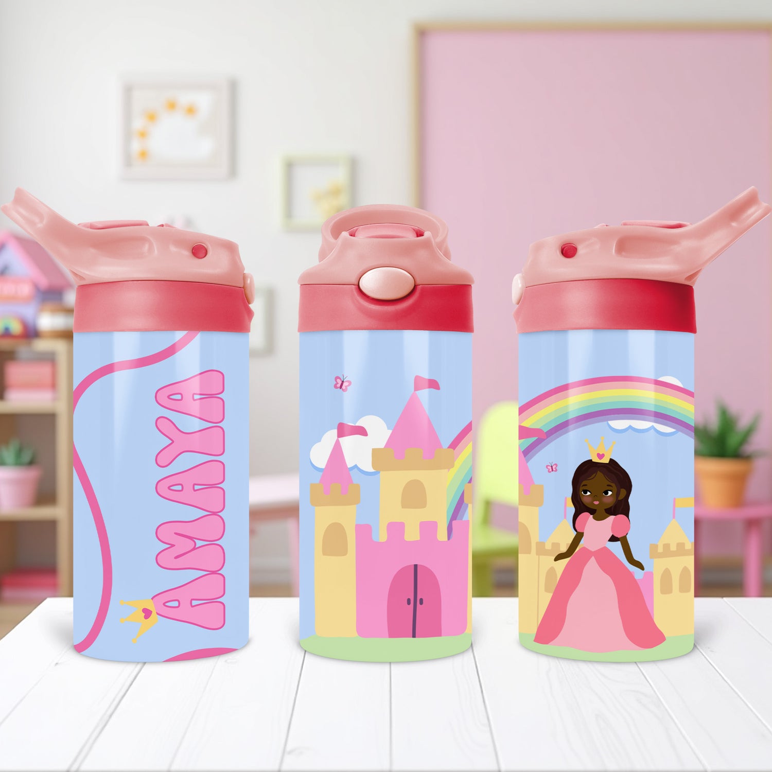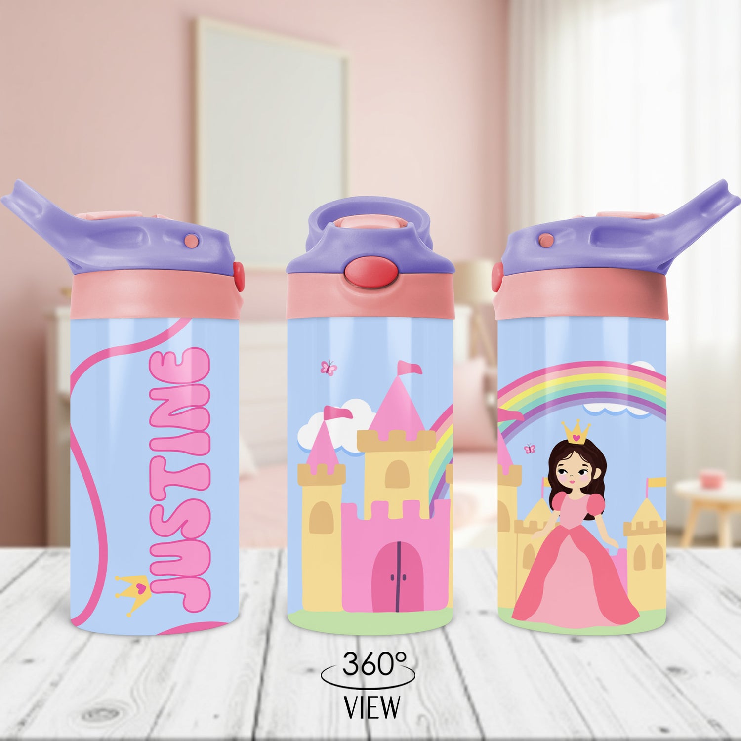 Princess Water Bottle with Name for Girls, Custom Kids Water Bottle for School
