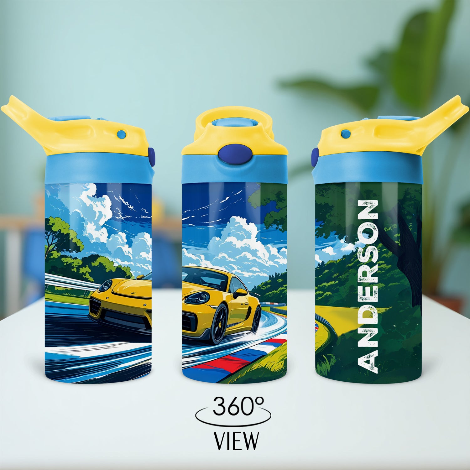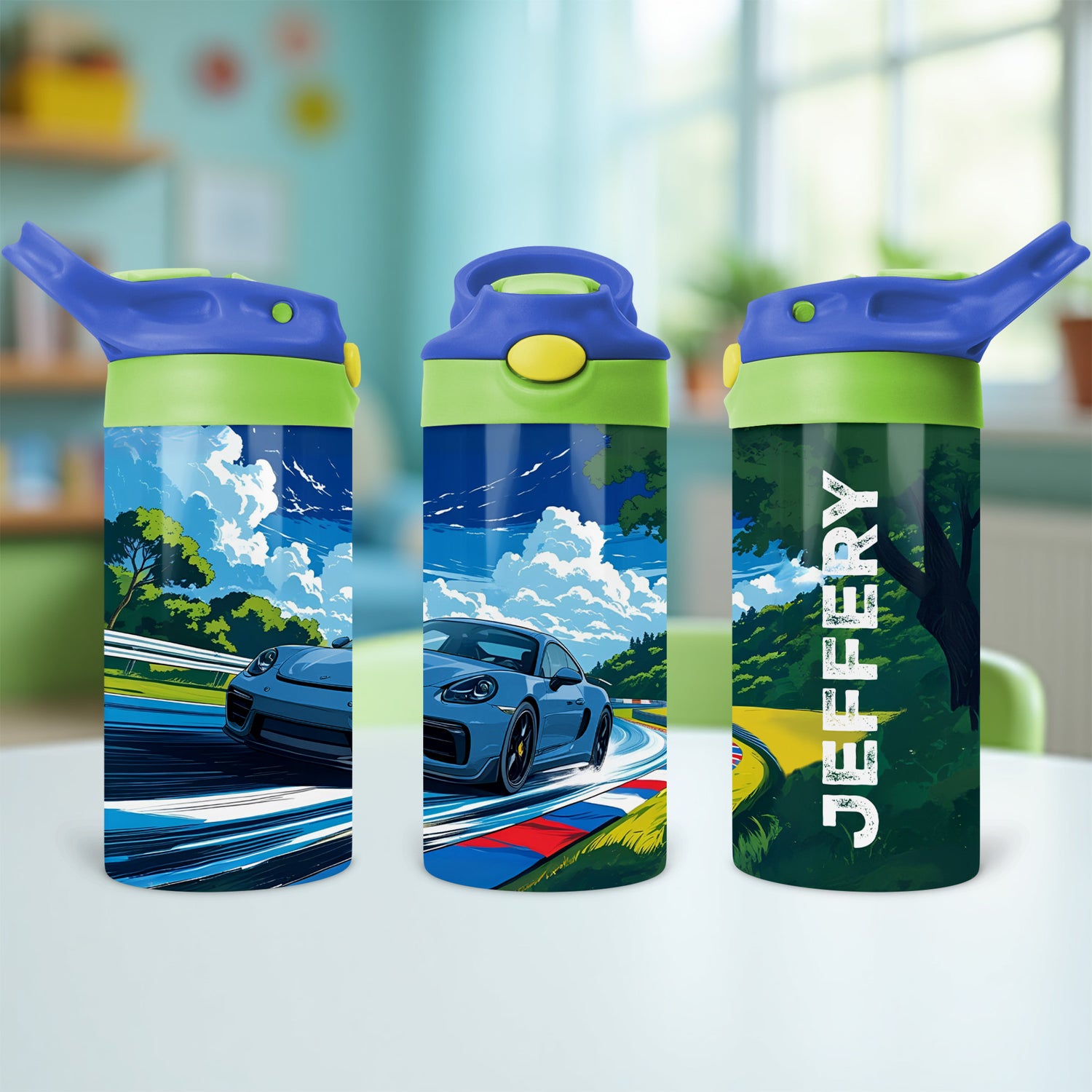 Race Car Water Bottle, Personalized Kids Back to School Tumbler for Boys