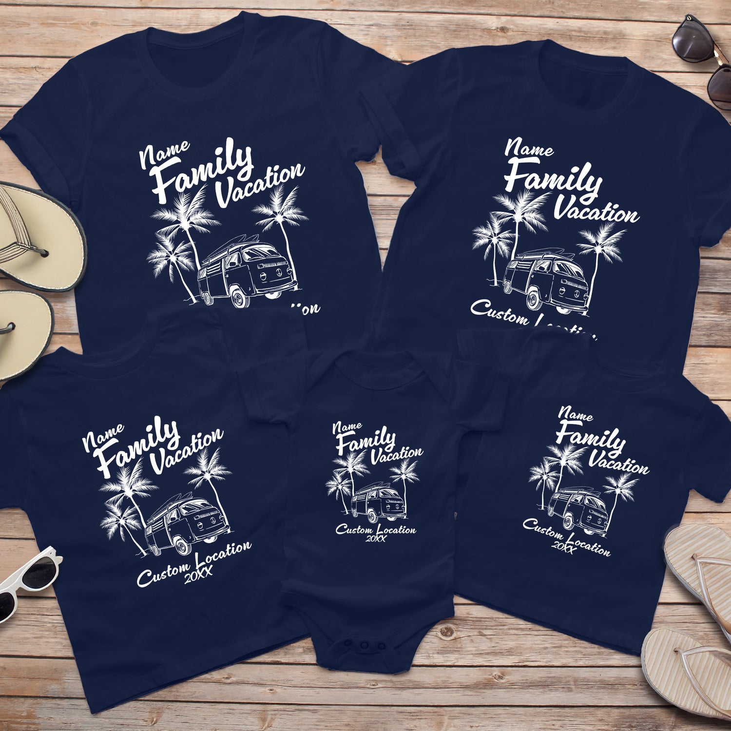 Customize your matching family trip shirts with a name, year, and location! Ideal for summer vacations, RV road trips, national park visits, and weekend getaways. These personalized family travel shirts are perfect for group photos, family reunions, and creating lasting keepsakes.