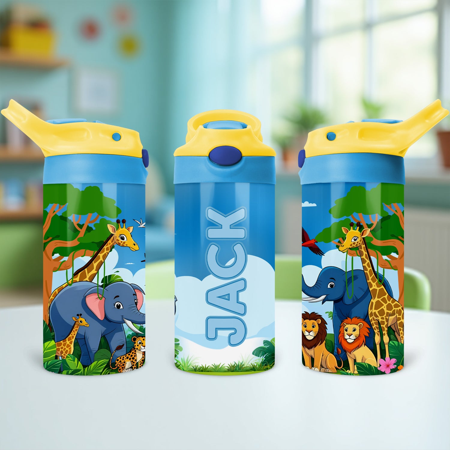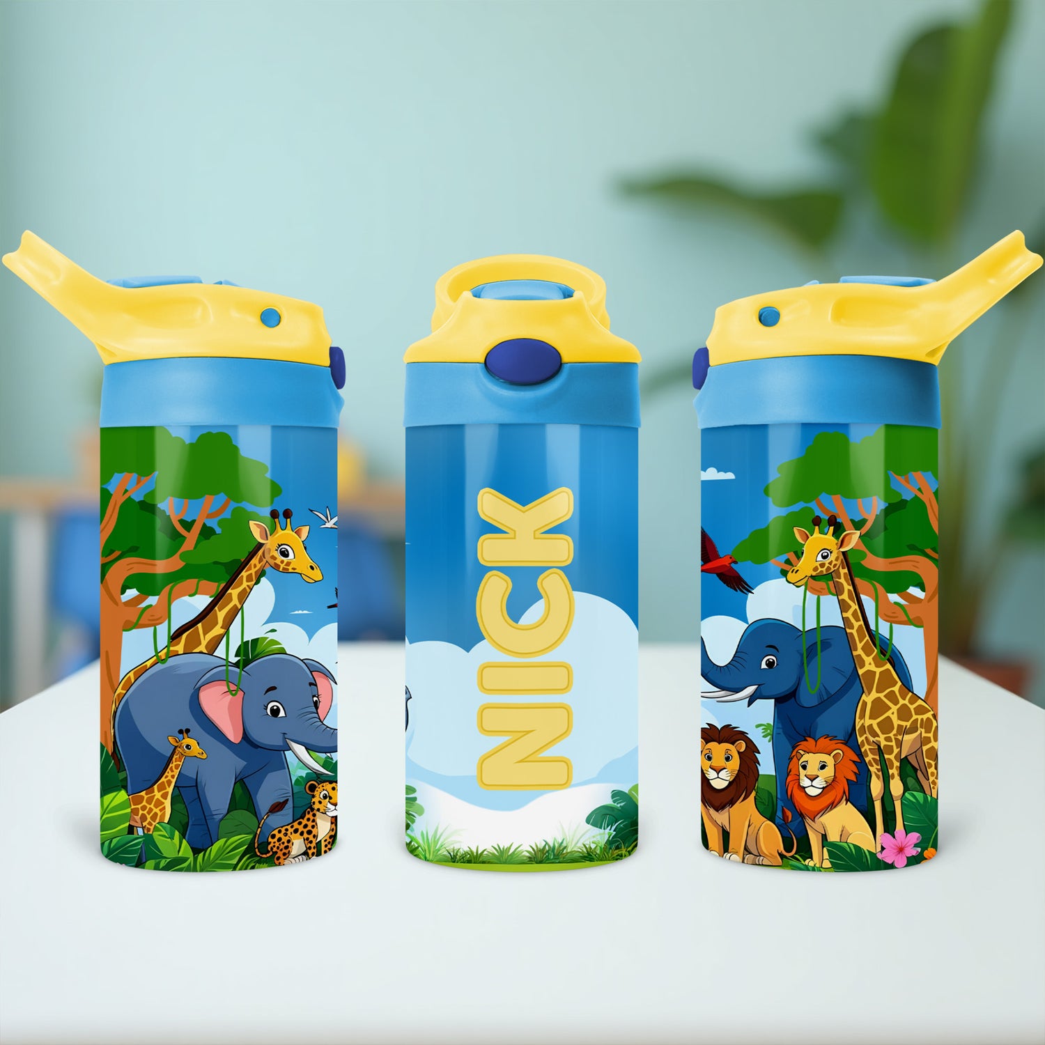 Safari Water Bottle with Name for Kids, Custom Back to School Tumbler for Boys and Girls
