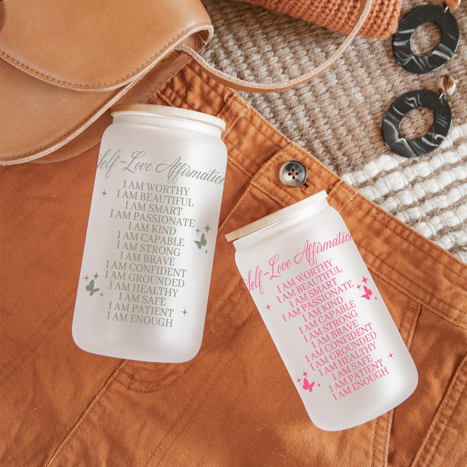 Self Love Affirmation Frosted and Clear Custom Iced Coffee Glass Can Tumblers