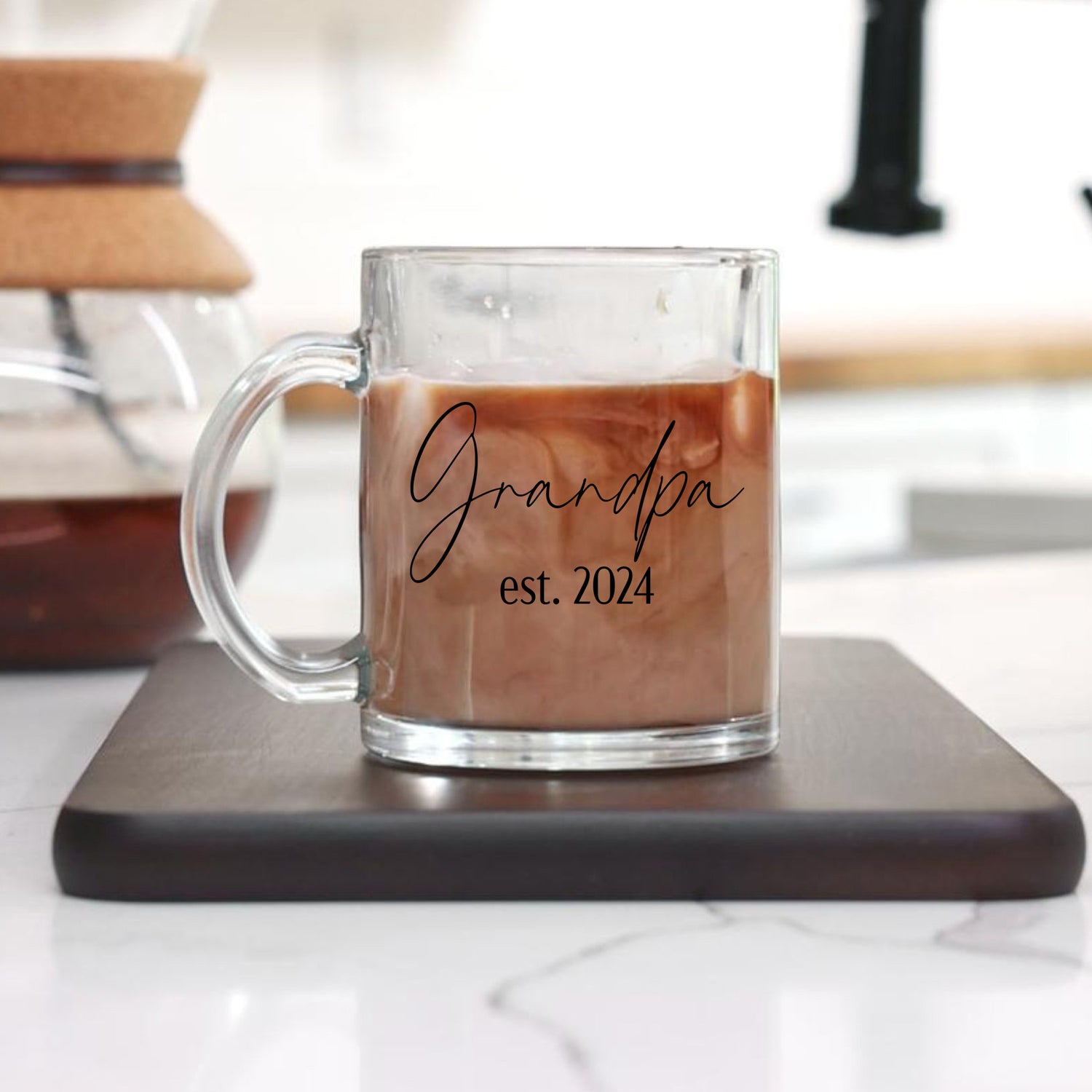 Custom Clear Glass Mug Gift for Dad, Personalized Fathers Day Mug for Father or Grandpa