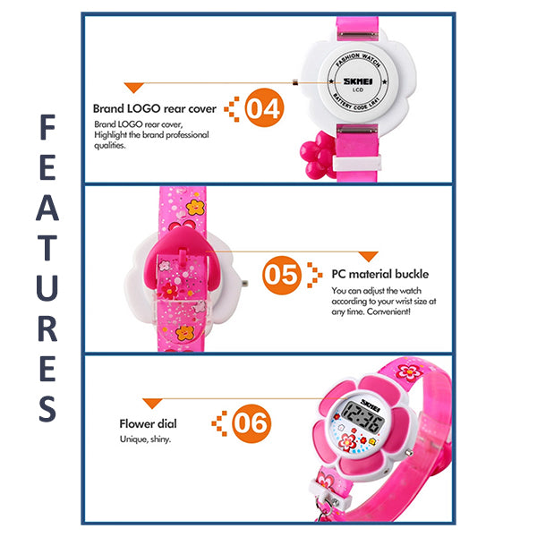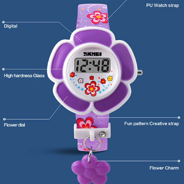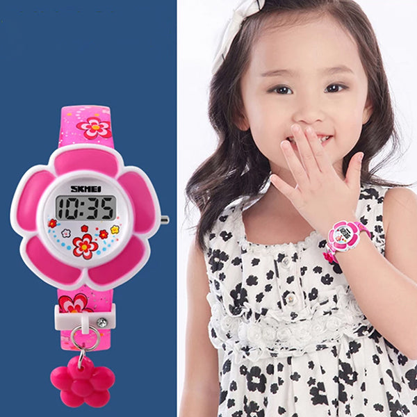 SKMEI Girls Cute Flower Digital Watch with Charm, 4 to 7 year olds