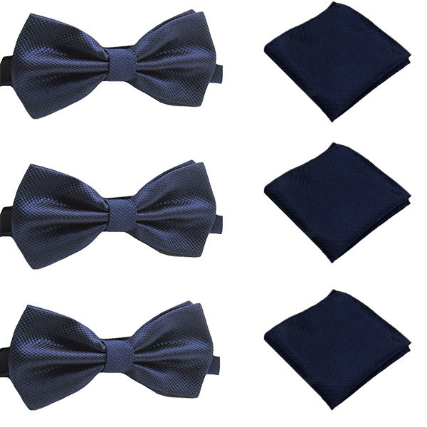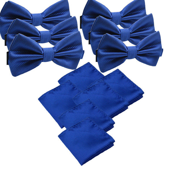 Solid Matching Pre-Tied Bow Tie and Pocket Square Sets for Formal Events - Royal Blue / Set of 3 is backordered and will ship as soon as it is back in stock.