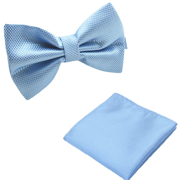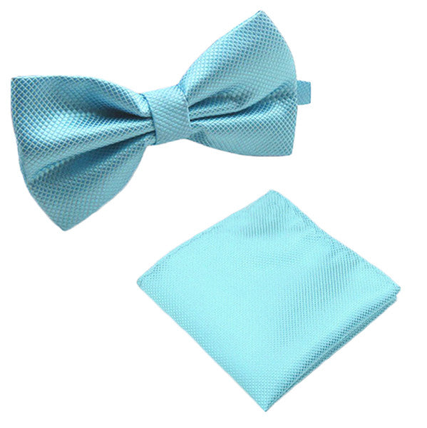 Solid Matching Pre-Tied Bow Tie and Pocket Square Sets for Formal Events