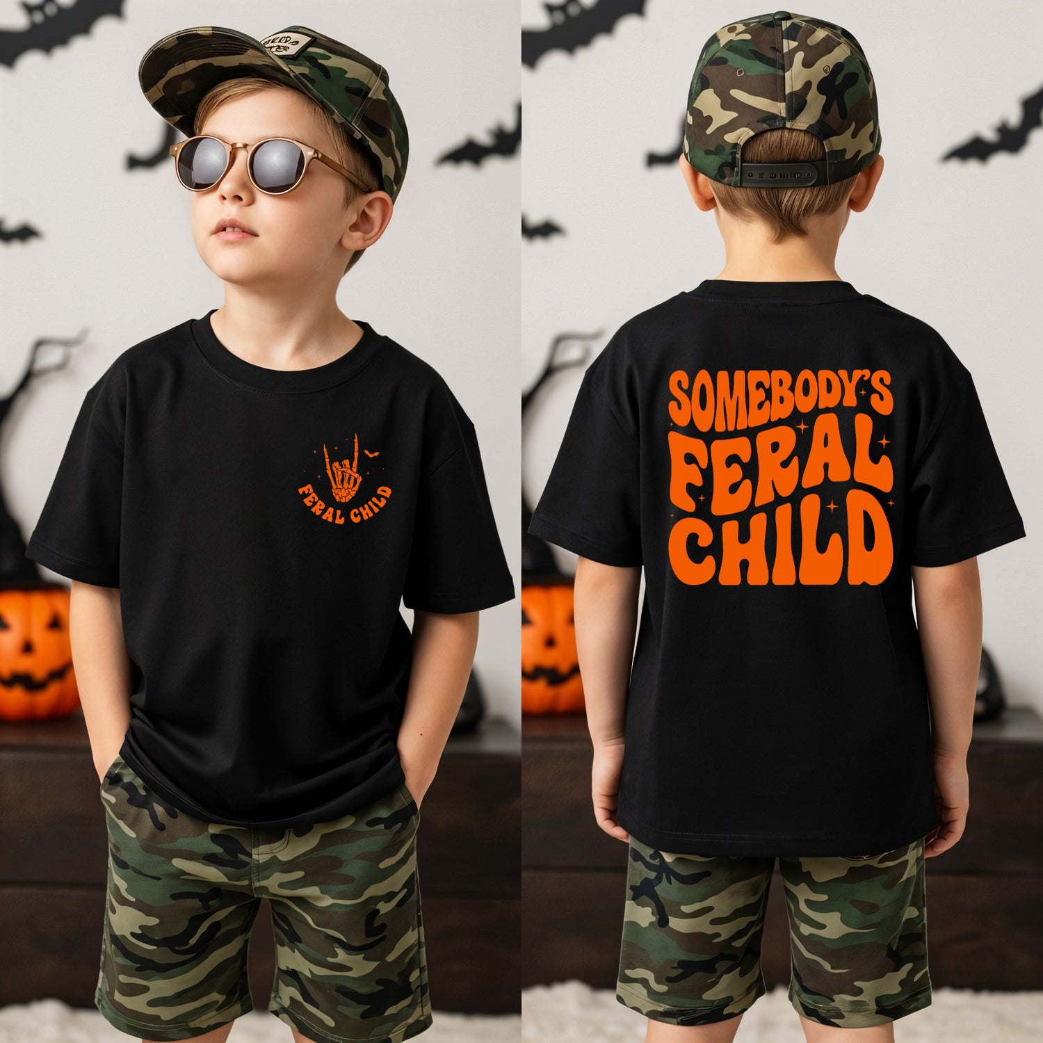 Somebody's Feral Child Shirt for Kids and Teens, Funny Halloween Shirts