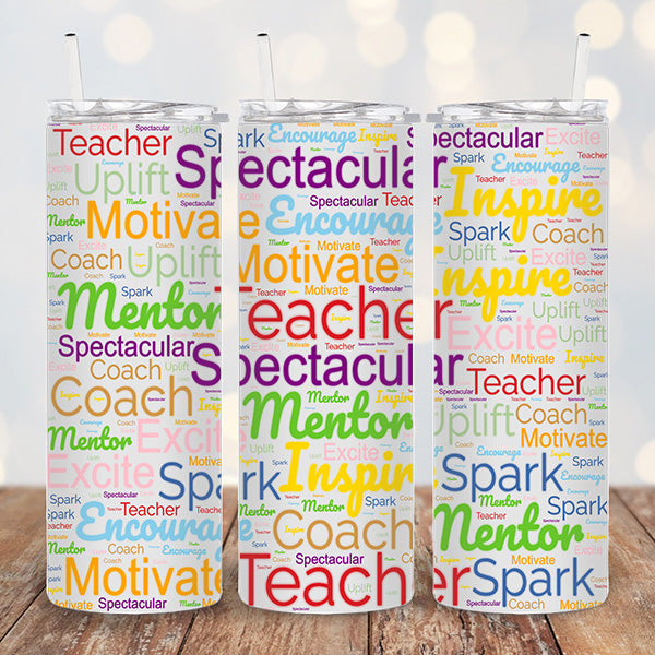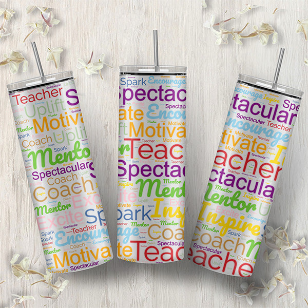 Teacher Appreciation Custom Tumbler in Five Color Styles Gift for Teachers - Multicolor is backordered and will ship as soon as it is back in stock.