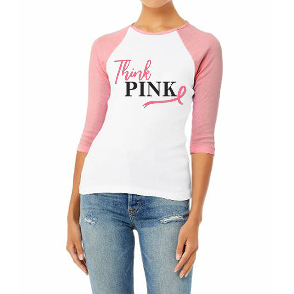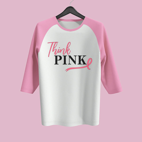 Think Pink Breast Cancer Awareness Month Quarter Sleeve Raglan Tee
