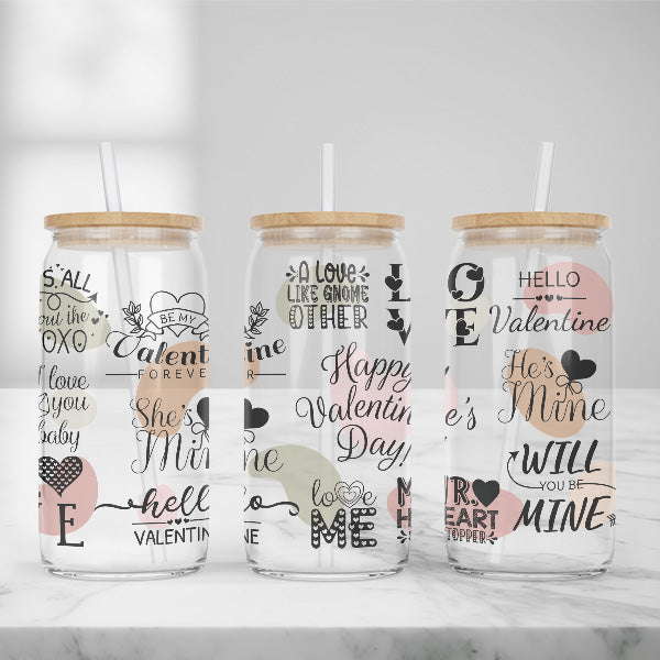 Cute and Humorous Valentines Day Glass Iced Coffee Tumblers in Multiple Designs