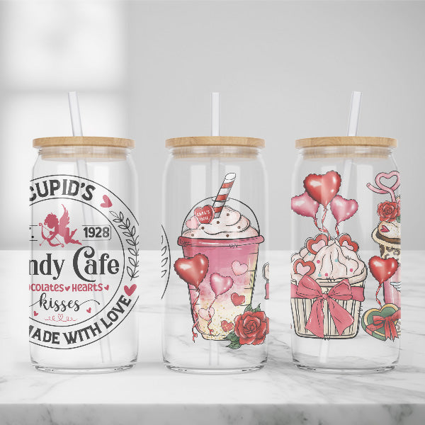 This set of 2 Valentine's Day glass iced coffee cups is the perfect addition to any kitchenware collection. You will adore the beautiful designs. This product is ideal for indoor occasions such as cozy mornings at home. It is also a great gift to give the girls for Galantines night.
