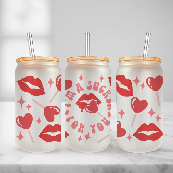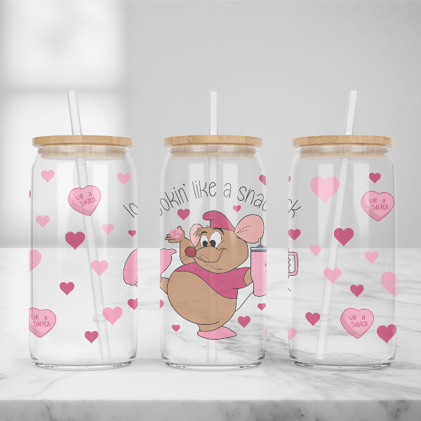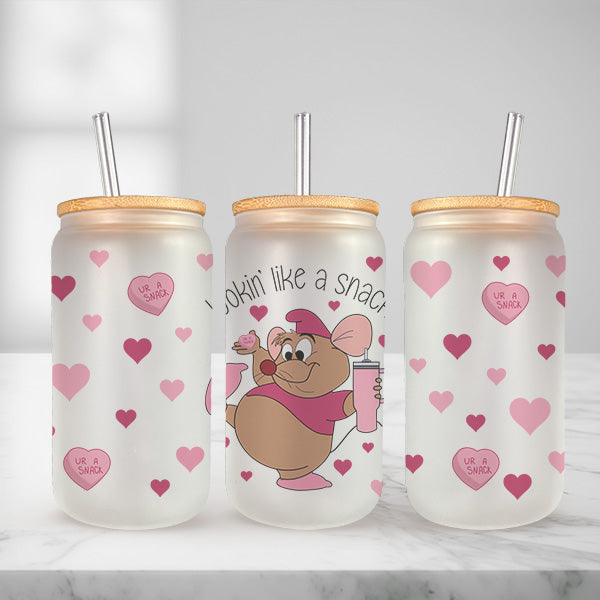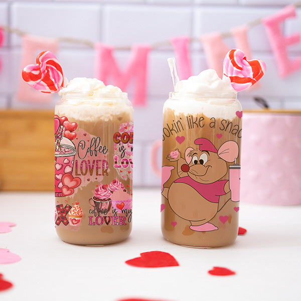 Cute and Humorous Valentines Day Glass Iced Coffee Tumblers in Multiple Designs - Lookin' Like A Snack - Clear is backordered and will ship as soon as it is back in stock.
