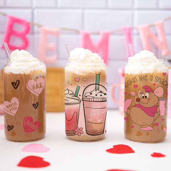 The perfect iced coffee glass cans for Valentines Day!