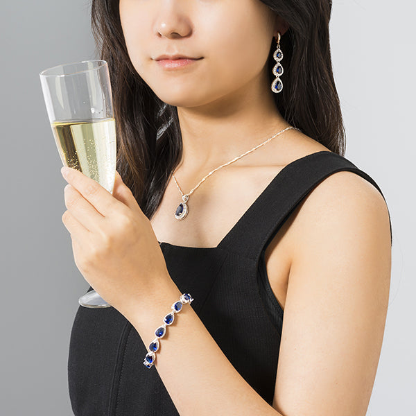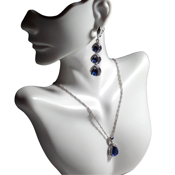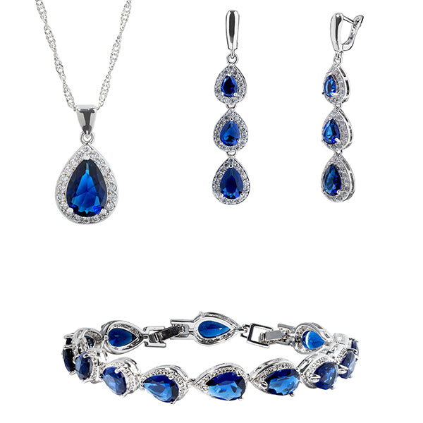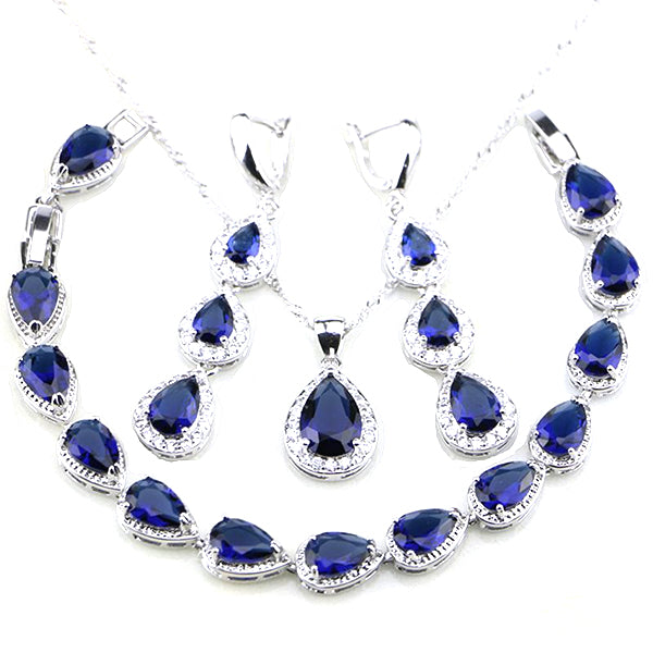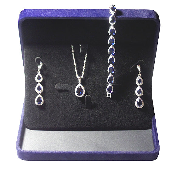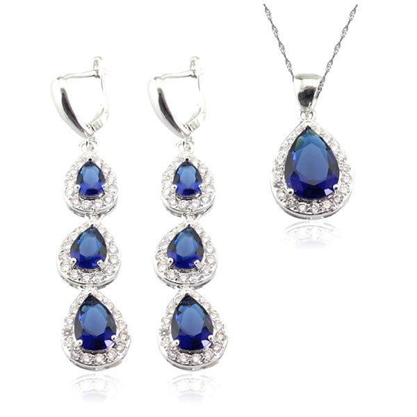 Womens 3 Pc Water Drop Jewelry Set, 925 Sterling Silver, Blue and White CZ