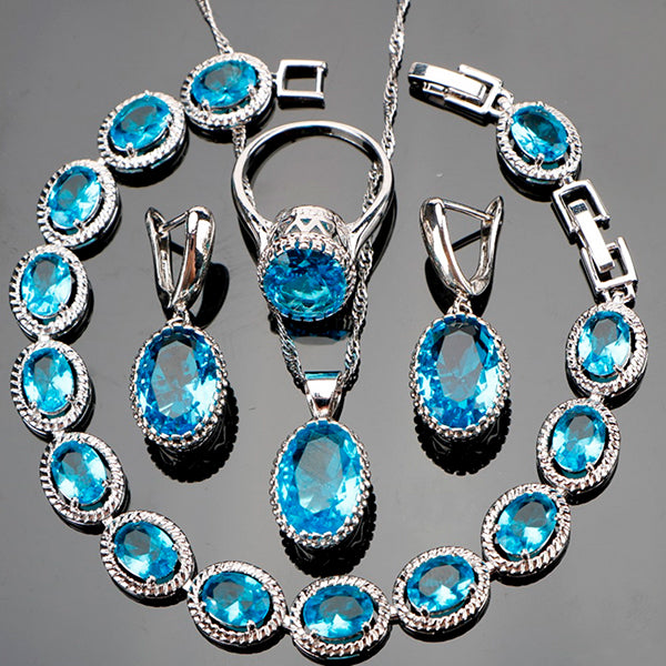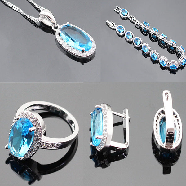 Womens 4 Pcs Jewelry Set, Created Topaz Oval Stones, Plus Sizes Available