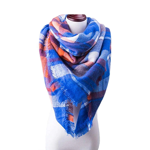 Womens Cold Weather Large Triangle Plaid Scarf - Blue Americana is backordered and will ship as soon as it is back in stock.