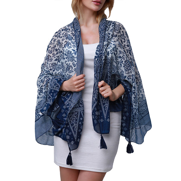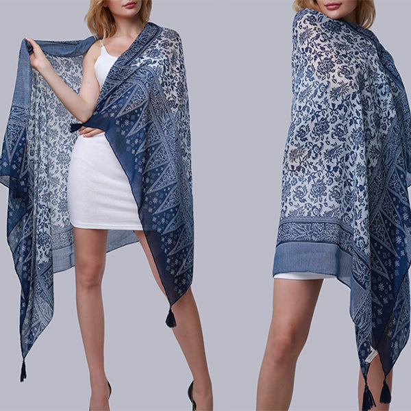 - Gorgeous womens scarf and wrap with beautiful white and blue floral print