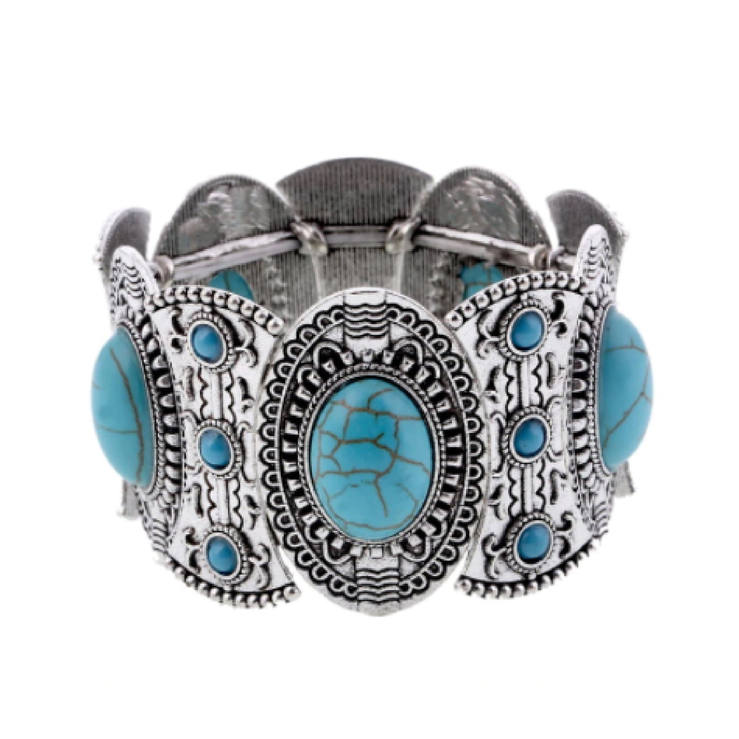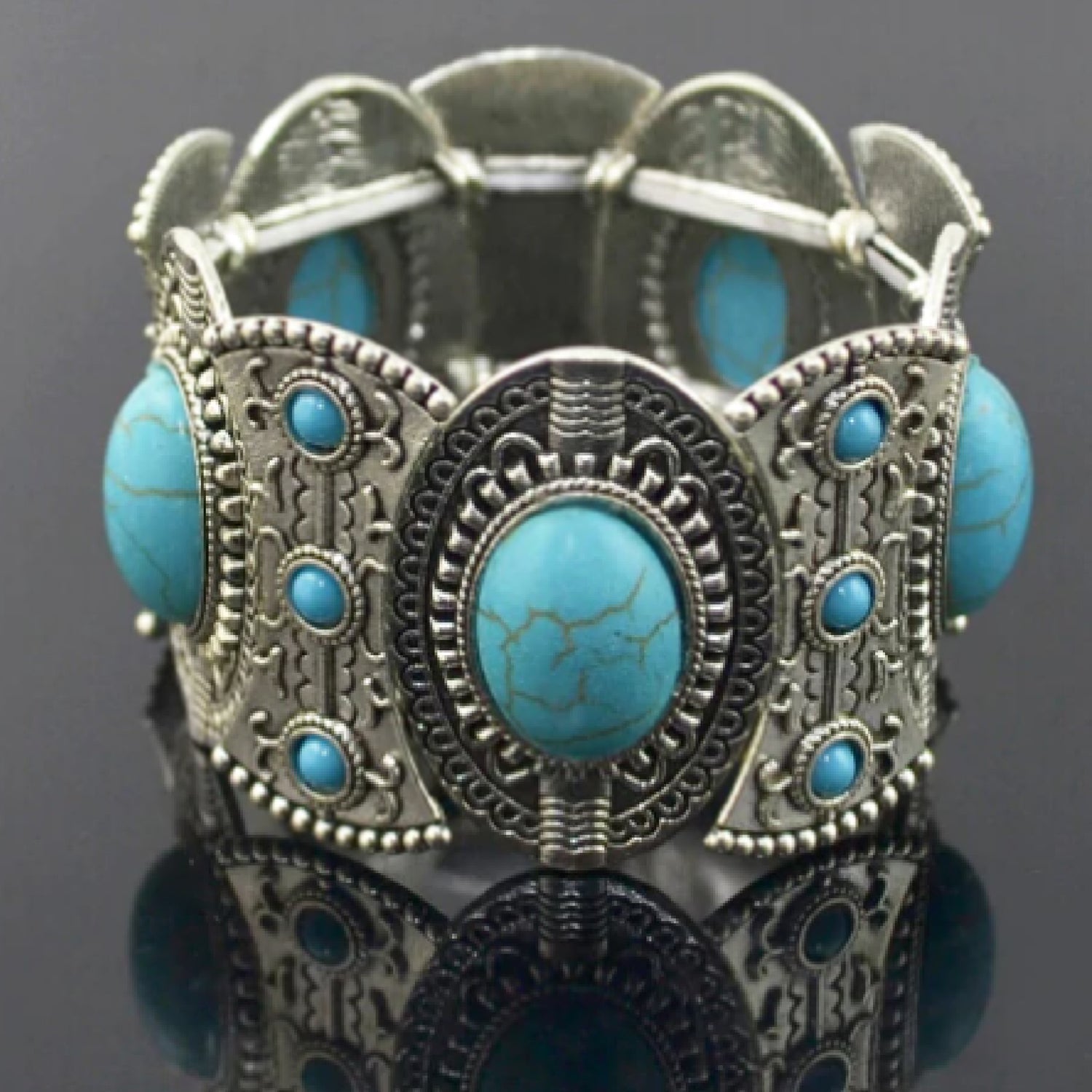 Women's Vintage Boho Turquoise Cuff Stretch Bracelet, Ethnic Fashion Jewelry