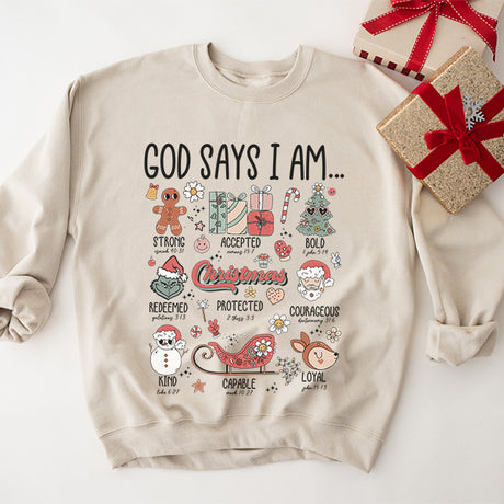 +5In stockFrom $ 24.70$ 45.00Unit price /XGod Says I Am... Motivational Christmas Sweatshirt with Bible Verses