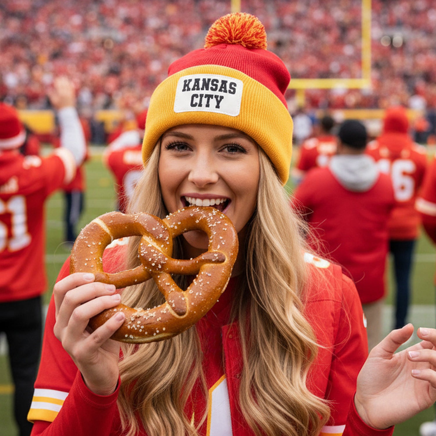 Available in multiple team-inspired color combinations, each beanie features a soft knit fabric, a fun pom-pom top, and a custom faux leather or embroidered patch with your team name or custom text. Whether you’re representing your hometown team, college, or favorite football squad, this hat makes a thoughtful gift for football lovers and sports fans everywhere.