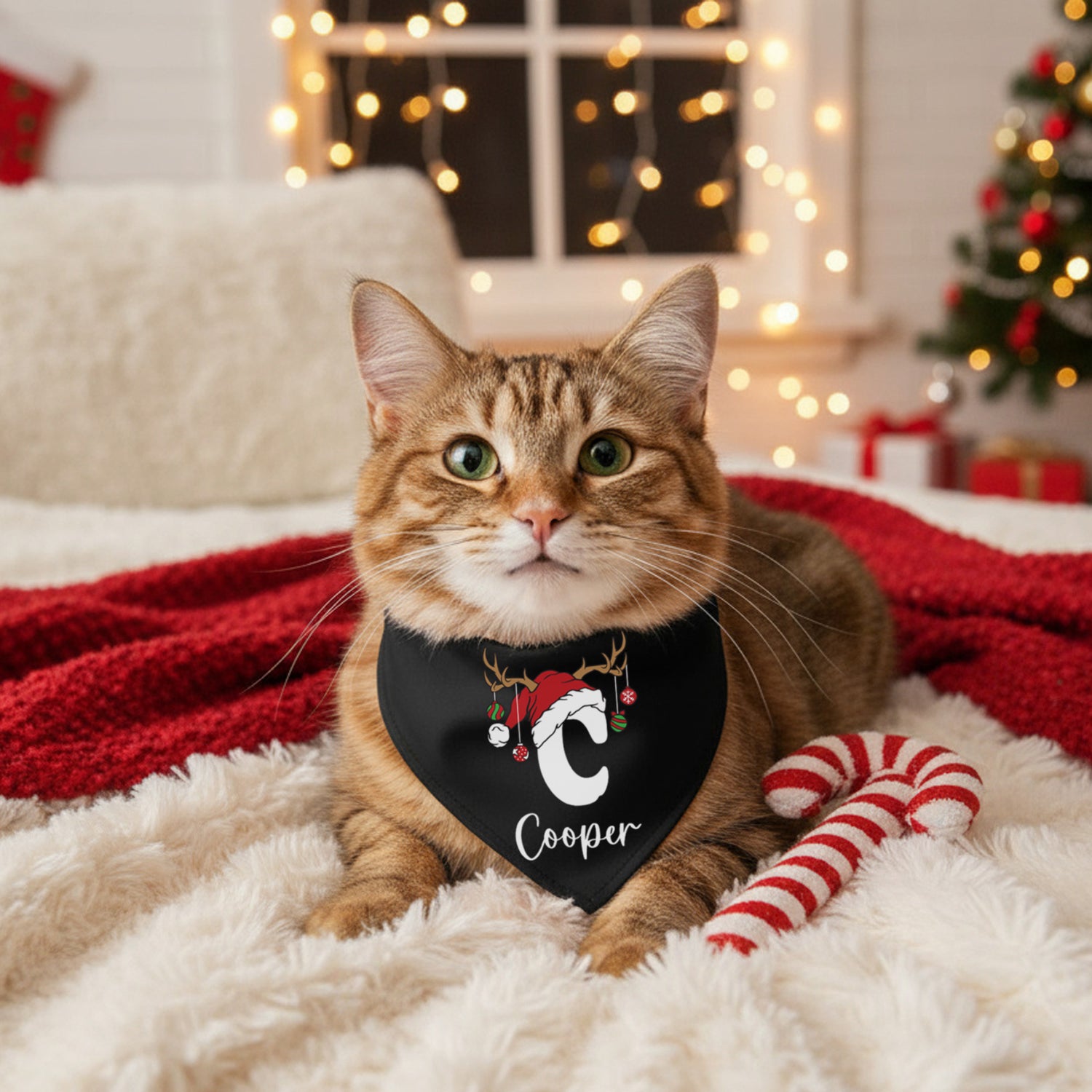 Reindeer Initial Personalized Dog Christmas Outfit with Name, Hoodies, Bandanas & Tanks, Sizes XS-3XL - Bandana / White / XS is backordered and will ship as soon as it is back in stock.