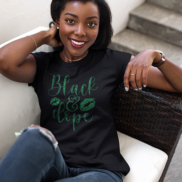 Cute Black & Dope Shirt that's not just great for Black History Month or Juneteenth but to wear all year long. Choose from standard print or glitter print. This shirt is offered in two design styles. A great unisex self-love and black pride shirt for all ages.