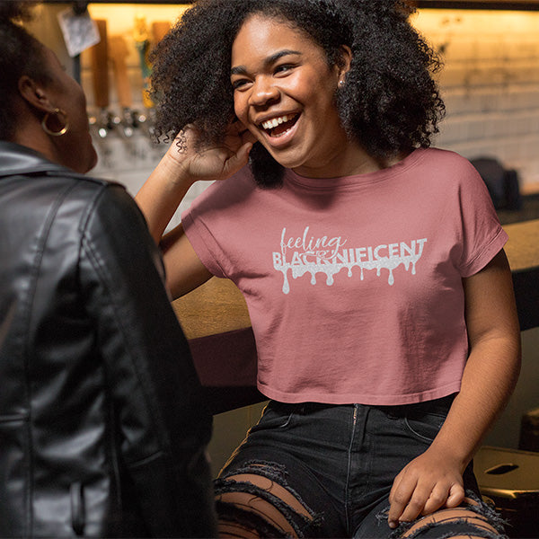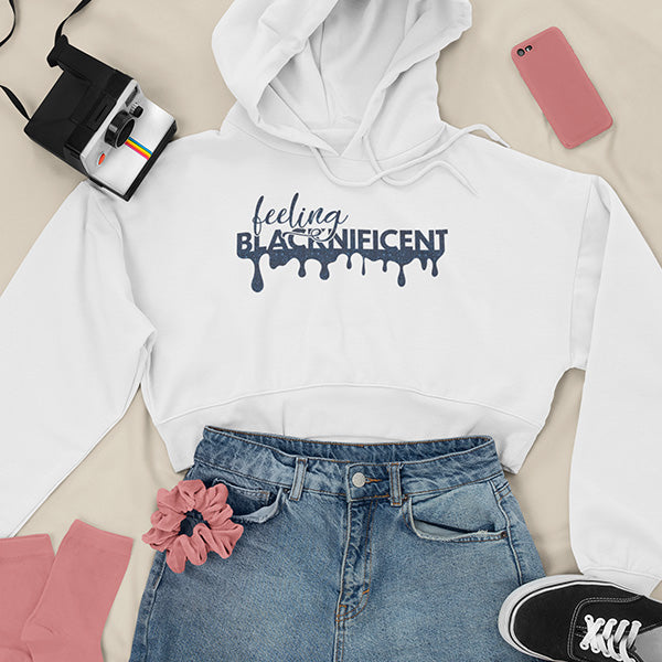 Feeling Blacknificent crop hoodie that we are sure teens and college students will love to wear.  Its a self pride statement that is uplifting and encouraging.  Great top to wear on HBCU campuses and more. Personalized shirt with color print.