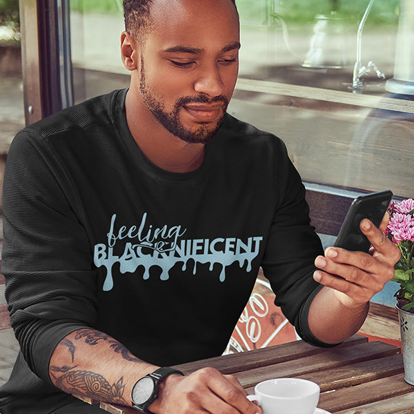 Feeling Blacknificent Shirt that's not just great for Black History Month or Juneteenth but to wear all year long. Choose from standard print or glitter print. It's simple, stylish and bold all at the same time. A great unisex black pride or Black Lives Matter shirt for all ages.