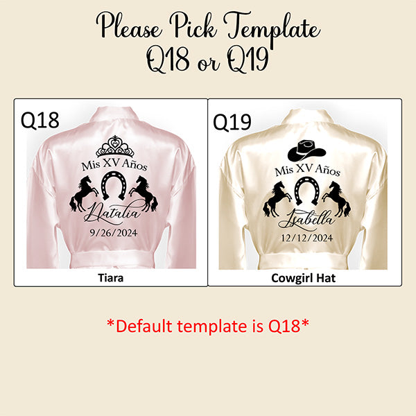 ⭐⭐Please note the Quinceanera templates shown cannot be changed. The name on the front of the robe, and the name and date on the back of the robe are the only changes made.