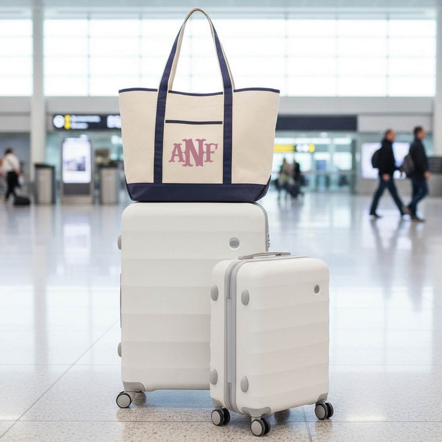 Carry style and function wherever you go with this large, personalized monogram tote bag, for women and teen girls who love a touch of elegance. Crafted from durable, high-quality canvas, this spacious tote features your custom printed initials in a beautiful script or block monogram — making it the perfect blend of classic charm and everyday practicality.