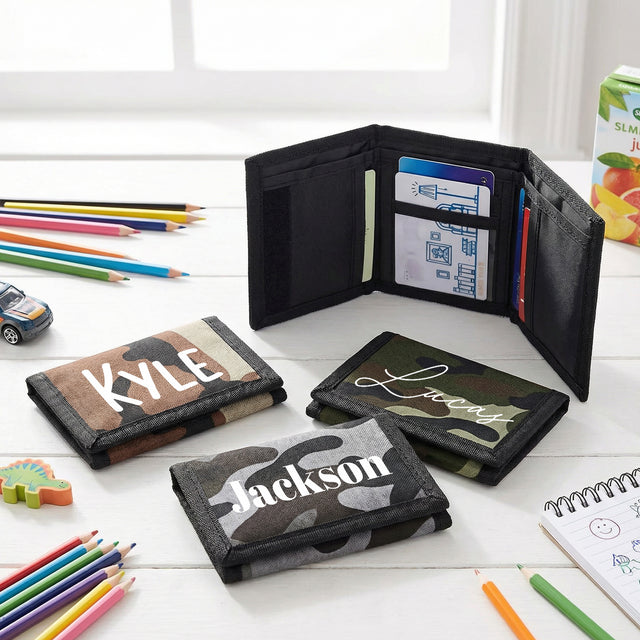 Camo Personalized Wallets for Kids with Name, Gifts for Boys