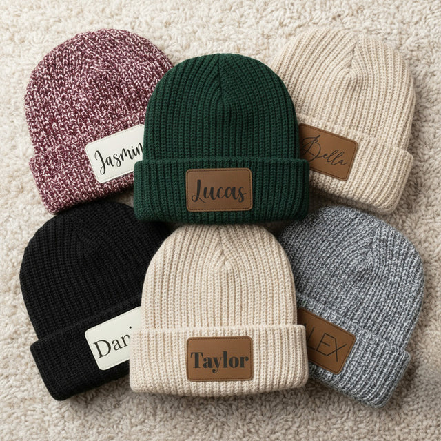 Stay cozy and stylish all season long with this Personalized Beanie featuring a custom engraved leather patch. Made for adults, this warm knit hat is the perfect blend of comfort, style, and personalization — ideal for everyday wear, winter outings, or thoughtful gifting.