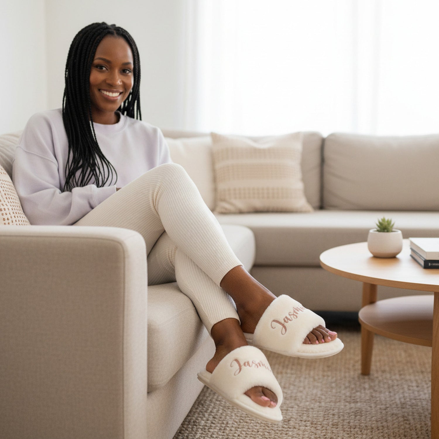 Step into comfort and style with these Personalized Fluffy Slippers, beautifully customized with embroidered initials for a soft, chic, and personal touch. Designed for teen girls and women, these cozy slippers make the perfect everyday essential — whether she’s lounging at home, getting ready in the morning, or relaxing after a long day.
