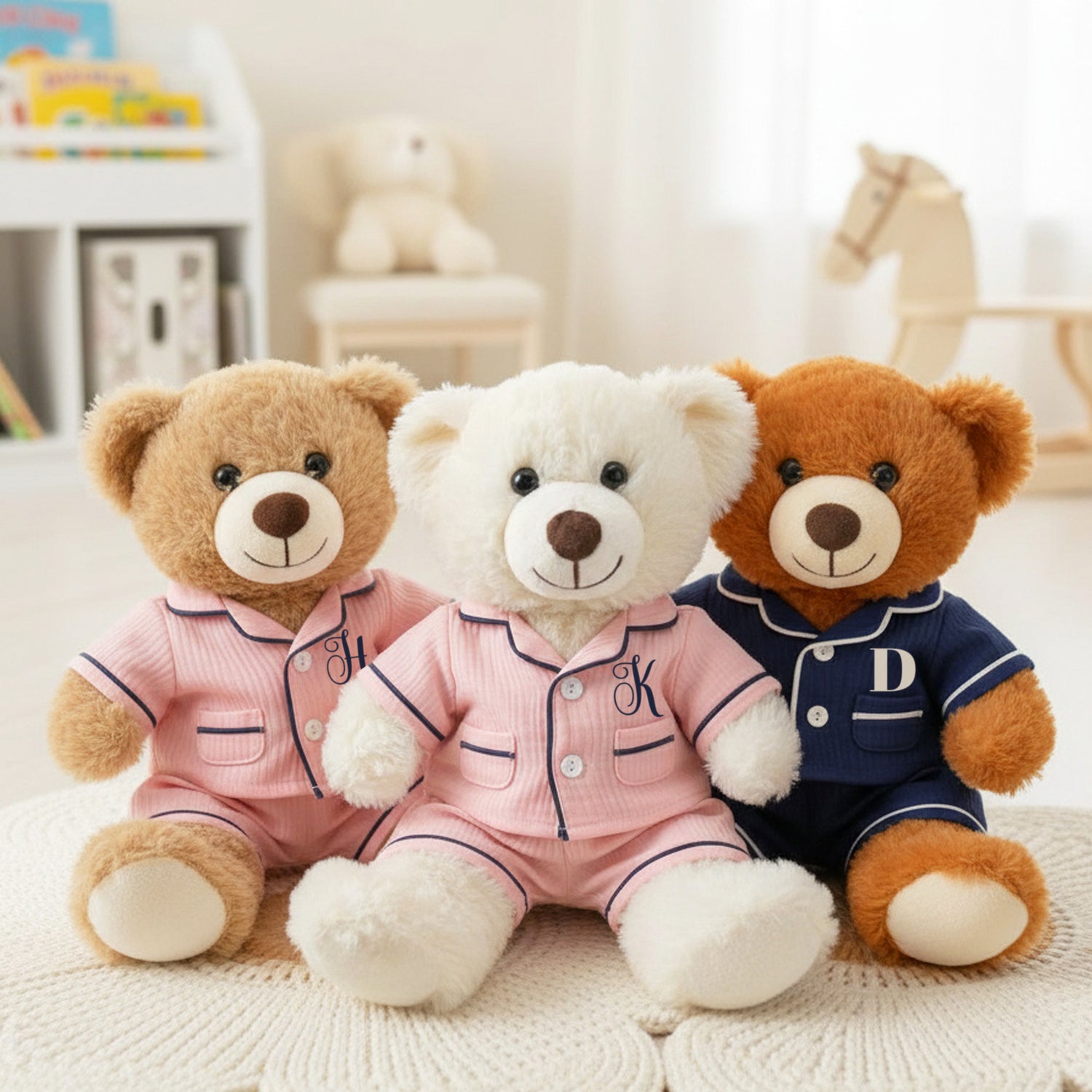 Each bear is crafted with ultra-soft plush fur and comes in multiple colors and pajama options, making it a timeless keepsake for children of all ages. Whether displayed on a nursery shelf or snuggled at bedtime, this personalized teddy brings warmth, comfort, and joy to every moment. A perfect sleepover essential, to make the night even more special.