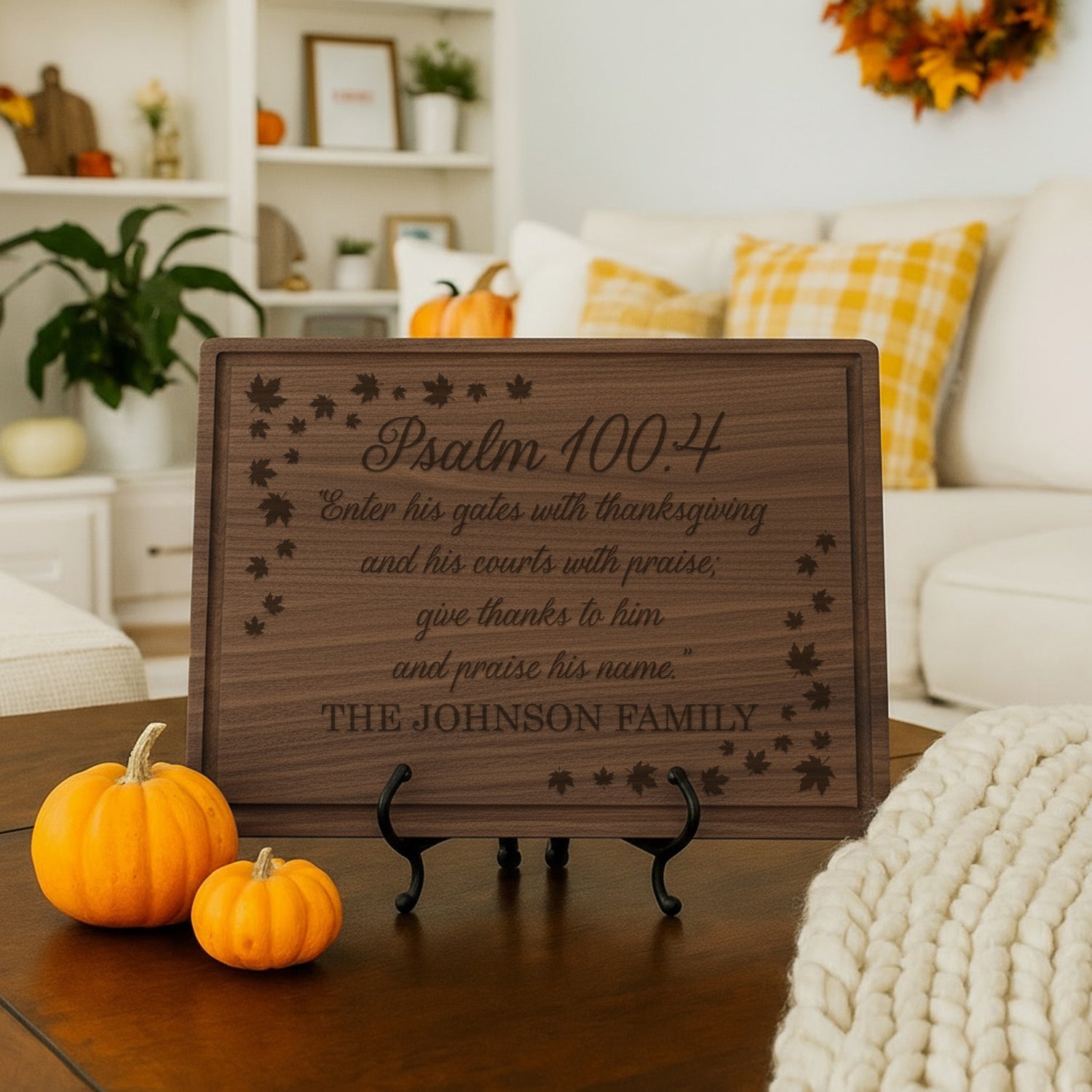 Give thanks with faith and love this holiday season with this Psalm 100:4 Personalized Cutting Board, beautifully engraved with the heartfelt verse: