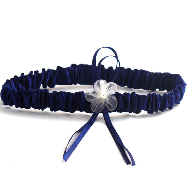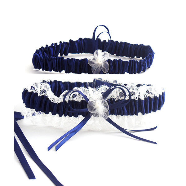 - Get a distinguished but sexy look with this wedding garter set featuring navy blue smooth satin