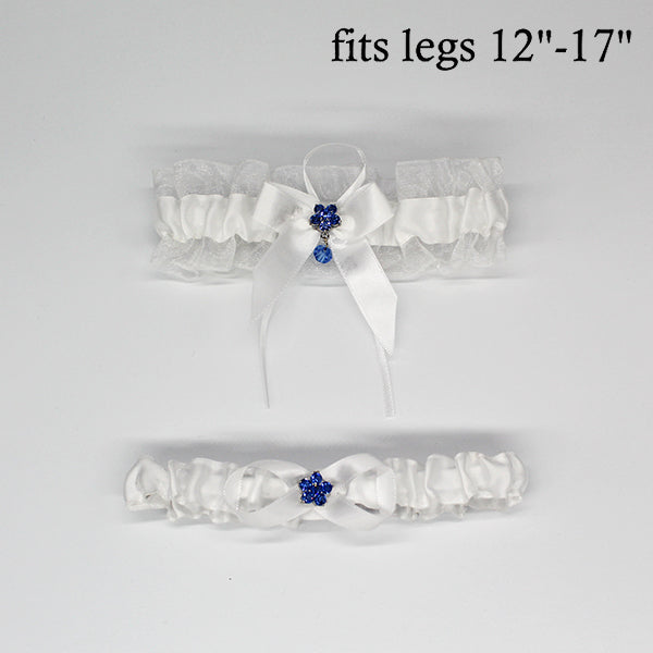 White Wedding Garter Set with Something Blue Flower Charm