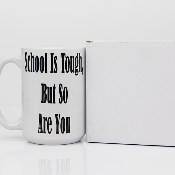 School Is Tough, But So Are You Coffee Mug, Motivational Coffee Cups - White is backordered and will ship as soon as it is back in stock.