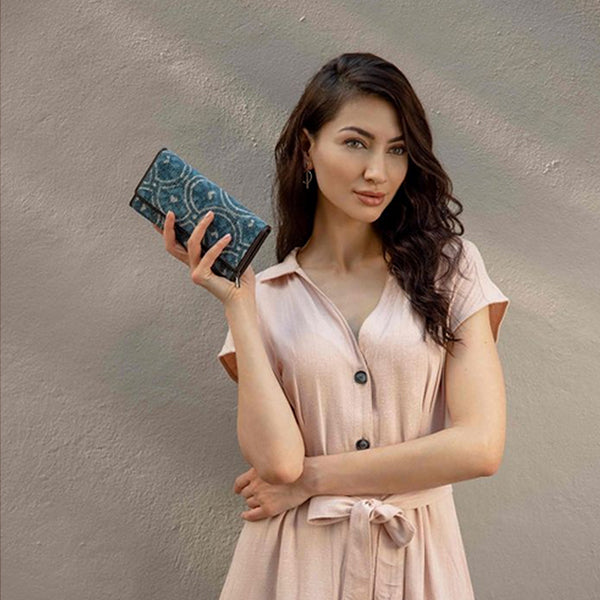 Indigo Leaf Wallet, Womens Clutch, Myra Bag, Large, Indigo